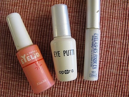 一開始我是用美材行購買的[毛絲凍]很土的名字~雞腳凍勒~~哈哈哈))))) 就覺得已經不錯用,後來嫌它外觀不夠美,買了左邊這瓶kiss me,還不錯用~很適合初學者,因為上膠以後還有時間可以慢慢讓你調整位置,中間這瓶也不錯~也很黏喔!乾的速度跟kiss me 差不多~ 也蠻牢的!! 最右邊這瓶呢~許多藝人彩妝師都有推薦過,標榜泡湯也不會掉(頭不能泡進湯裡喔~~那肯定會掉)ha ha haaaaa~~~,我是在yahoo 網拍買的,我再一般美材行沒見過它。