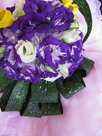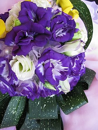 今天去上捧花課,其實說到捧花,我結婚時的捧花是很可愛的白玫瑰配上深綠色緞帶,當然我也很喜歡粉嫩色系的圓型捧花,不過今天看見紫色桔梗&黃色海芋....哇哈哈))))),心一橫~來吧!寶貝~我們來玩點不一樣的(心中的OS)....。