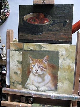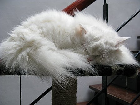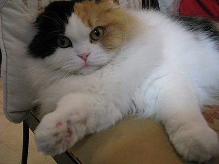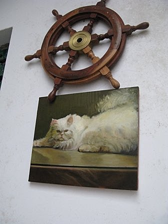 門一推開,迎接我們的是店貓1號 Mr.KiKi.....,從睡夢中被我搖醒,澳嘟嘟的臉,牠今年三歲,跟可樂同年,難怪有許多的堅持....[可以幫牠按摩頸背部/不可以摸下巴/不可以抱抱/想抓你時從不客氣/想咬妳時千萬別躲~否則假咬會變真咬.....] ,不過牠真的很可愛,嚴肅的臉只是裝出來的啦)))))