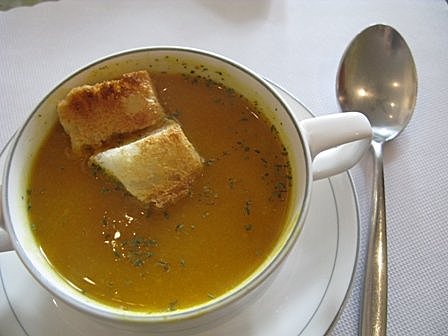 唉唷唉唷~~拍著拍著~餓囉!! 香濃濃的南瓜湯.....還有整塊的南瓜在其中ㄟ