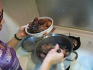 媽媽正在盛香噴噴好下飯的滷豬腳