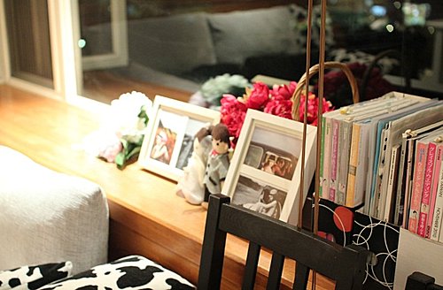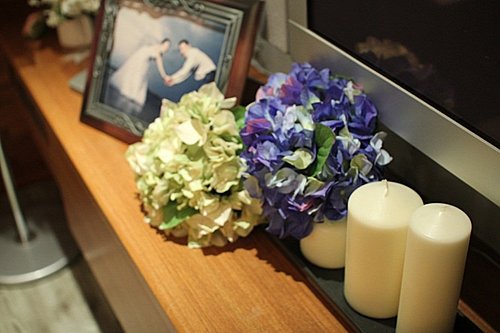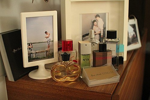 這是玄關鞋櫃,擺了幾瓶MINI & JOSH常用的香水,還有名片&明信片,