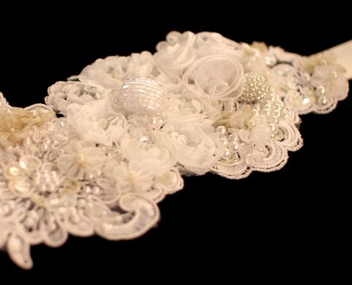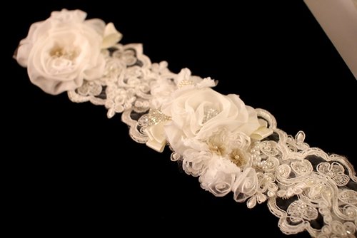 國外設計款新娘飾品,一個短版蕾絲髮帶售價折合台幣就要八~九千....,長版的約台幣一萬五以上~