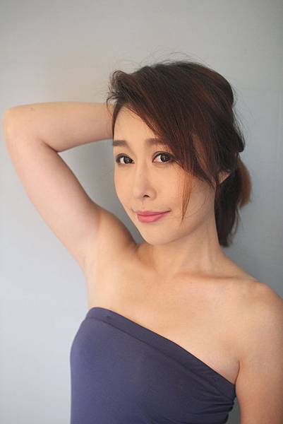 model本身膚質就不錯,只是局部稍有暗沉,我先用粉底刷沾取水粉霜,以畫圈圈的方式幫她上全臉,再用指腹沾取水粉霜,重複堆疊在眼周等暗沉處,再用海綿彈勻,接著刷上薄薄的透明蜜粉(淺紫),
